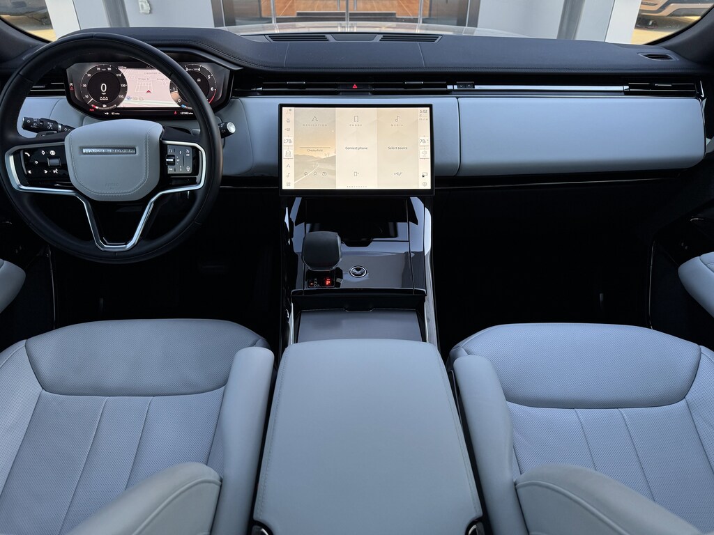 The cabin features a striking Light Cloud interior with Ebony headlining and premium Windsor leather. Enjoy ultimate comfort with 20-way heated and ventilated electric memory front seats and power-recline heated/ventilated rear seats.