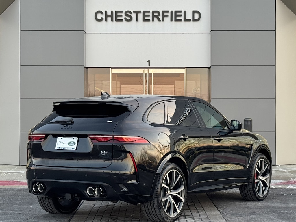 Unleash the beast with the brand-new 2026 Jaguar F-PACE SVR 575PS AWD. This high-performance luxury SUV in dramatic Santorini Black boasts a supercharged V8 engine, race-inspired design, and unparalleled luxury, available now in the Chesterfield, MO area.